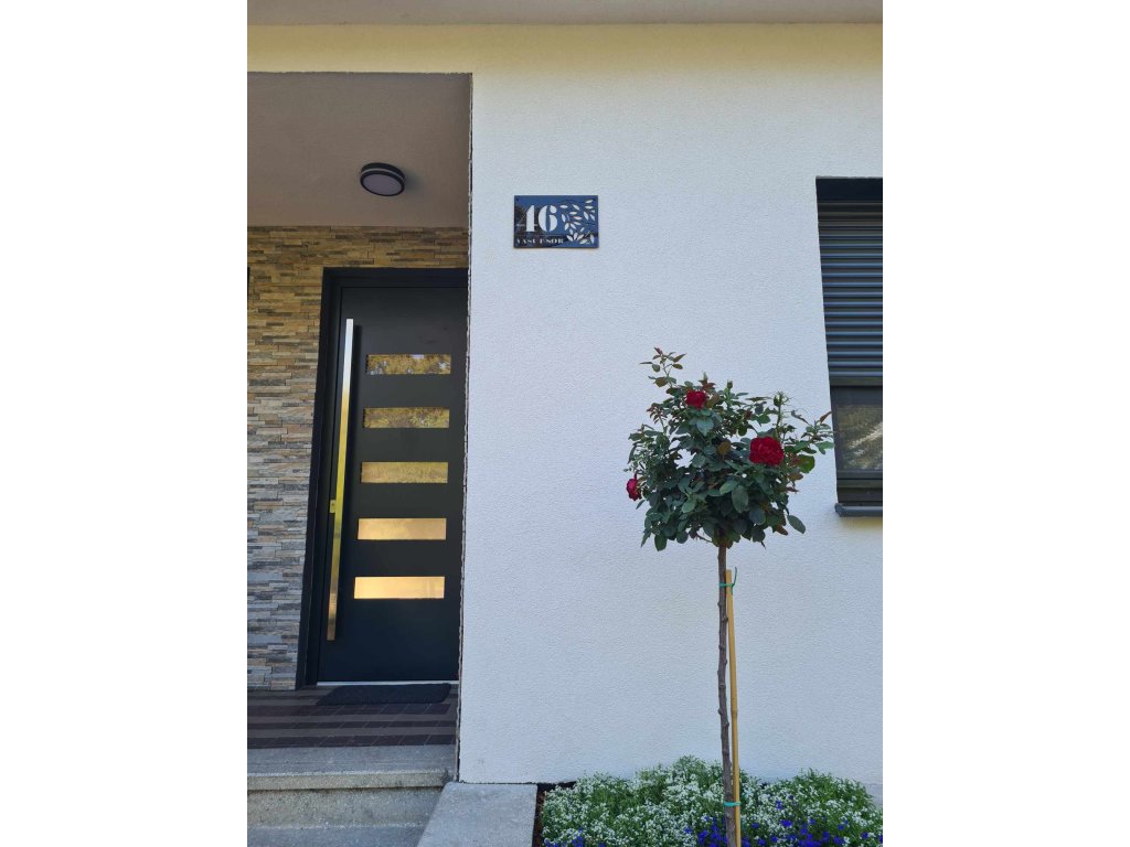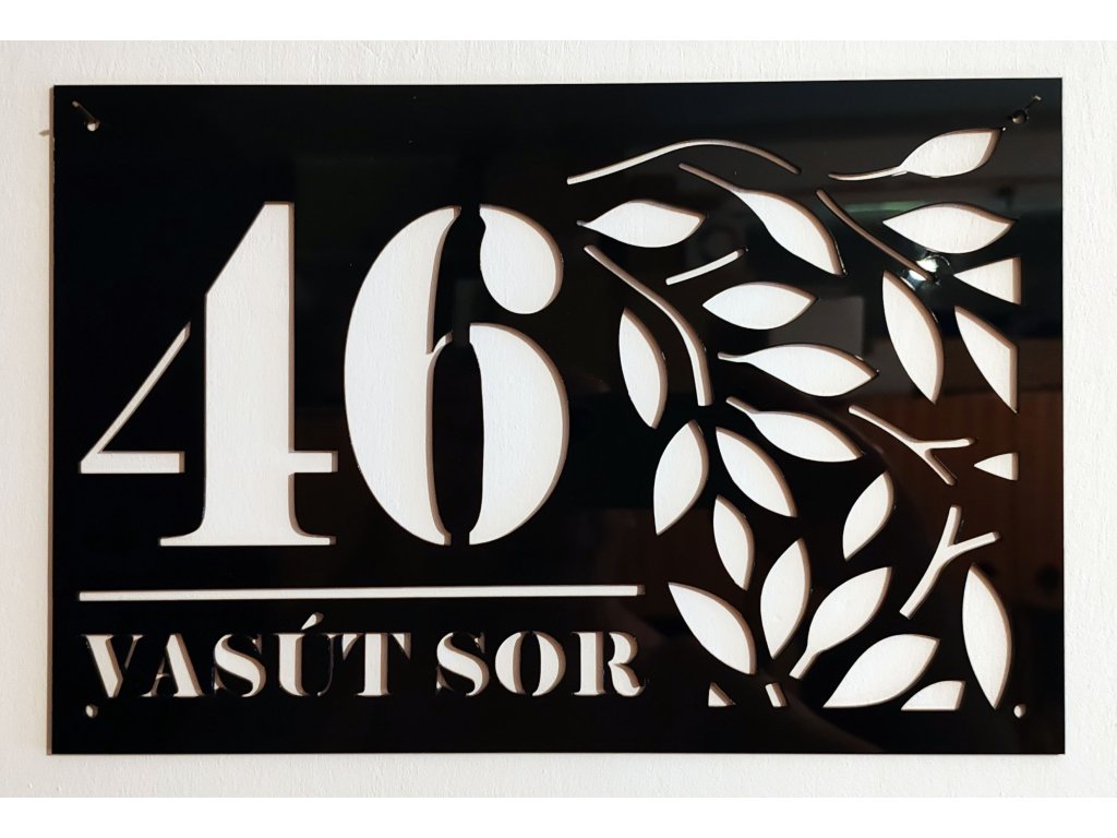 Nagyon modern és látványos áttört mintás, leveles házszám tábla fényes akril lapból. Dísze lehet egy szép háznak. Időjárásálló, UV álló.
