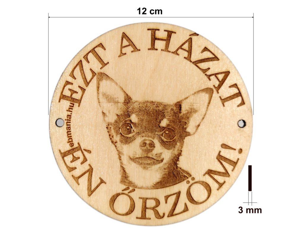 Ha esetleg veszélyes a kutyád, akkor kötelező kitenni egy táblát, de ha nem akkor is mutasd meg, hogy milyen szuper gazdi vagy! Ez a kerek kutyára figyelmeztető tábla fotóalapú gravírozással készült, így hordozza a fajta apróbb jellegzetességeit is, amik életre kelnek a fán. 4 rétegű felületkezelése révén időtálló és prémium megjelenésű. Saját szöveggel is kérhető, pl.: Harapós kutya!, Vigyázz a kutya harap!, stb. A maximum három szavas szöveget írd be a megjegyzésbe. Amennyiben mégsem hasonlítana eléggé a Te kedvencedhez, kérd saját fotóval.