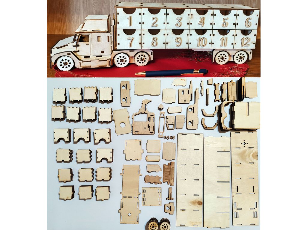 Összerakható, lapraszerelt Adventi naptár kamion