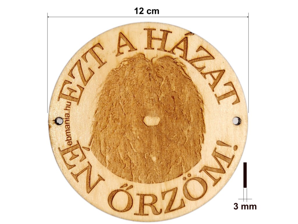 Ha esetleg veszélyes a kutyád, akkor kötelező kitenni egy táblát, de ha nem akkor is mutasd meg, hogy milyen szuper gazdi vagy! Ez a kerek kutyára figyelmeztető tábla fotóalapú gravírozással készült, így hordozza a fajta apróbb jellegzetességeit is, amik életre kelnek a fán. 4 rétegű felületkezelése révén időtálló és prémium megjelenésű. Saját szöveggel is kérhető, pl.: Harapós kutya!, Vigyázz a kutya harap!, stb. A maximum három szavas szöveget írd be a megjegyzésbe. Amennyiben mégsem hasonlítana eléggé a Te kedvencedhez, kérd saját fotóval.