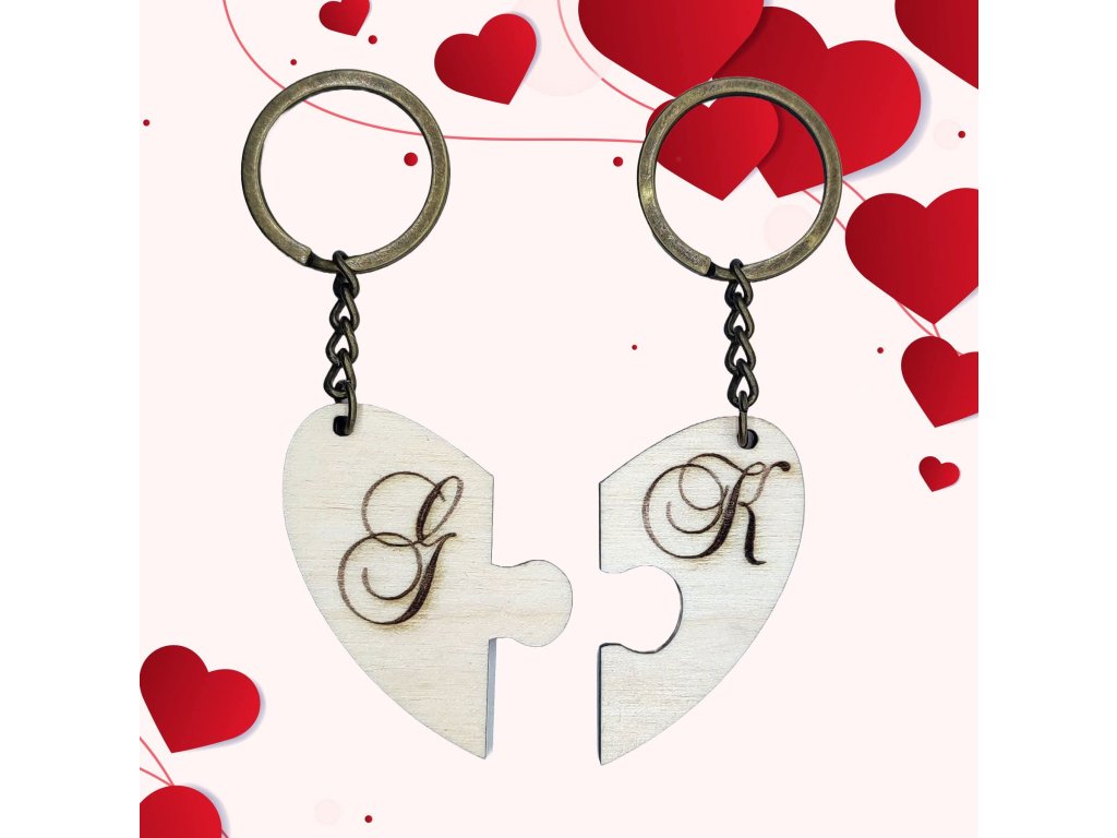 Valentin napi ajándék, páros kulcstartó, gravírozott monogramokkal