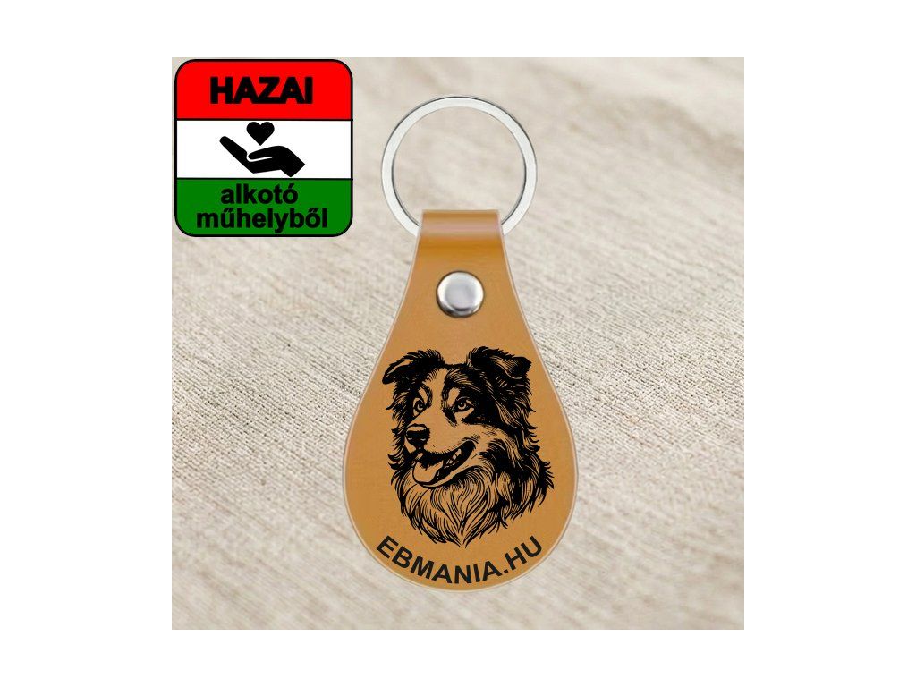 Saját névvel kérhető Border Collie grafikás bőr kulcstartó