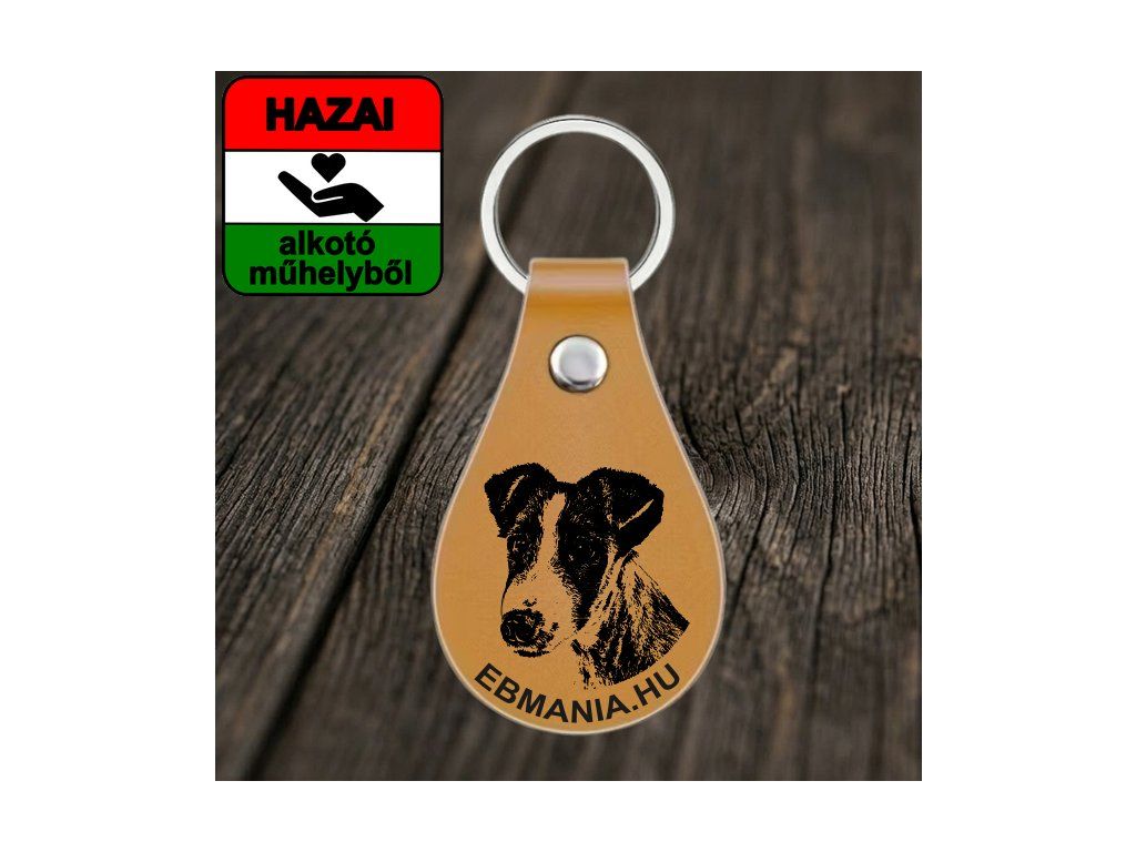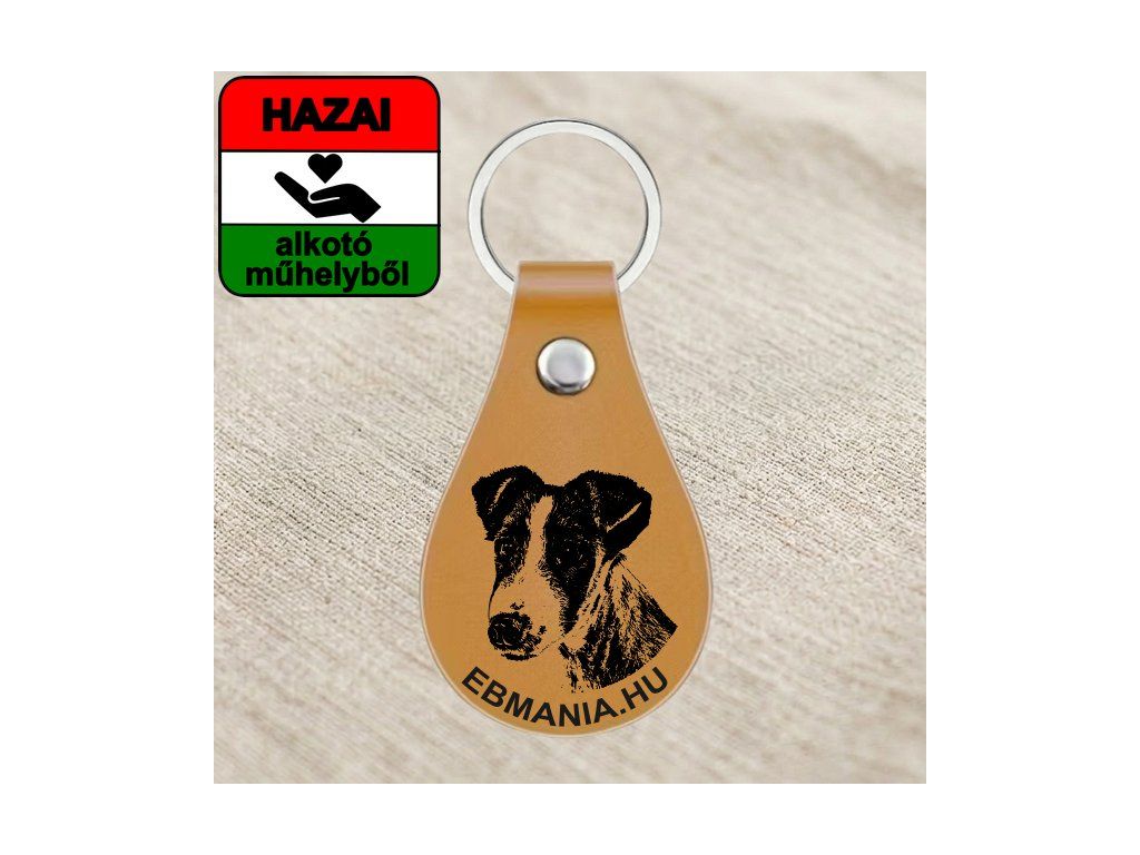 Saját névvel kérhető Foxterrier grafikás bőr kulcstartó