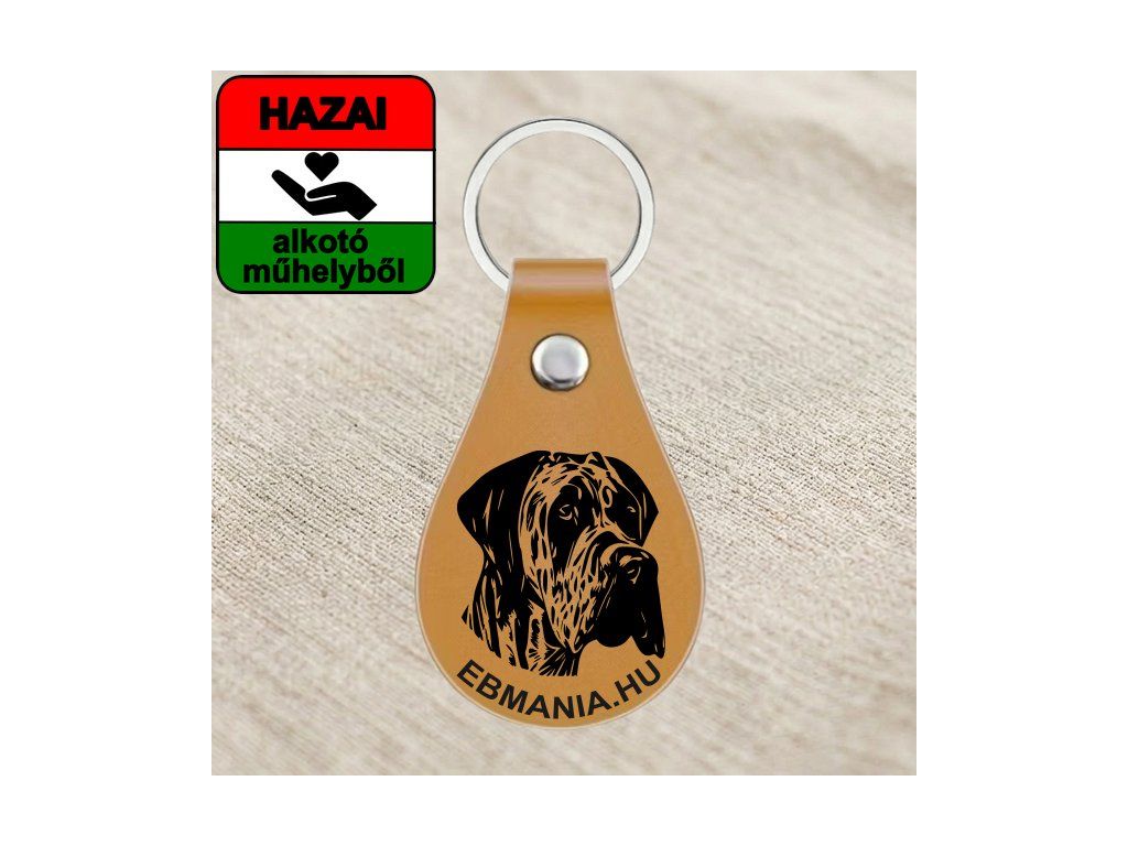Saját névvel kérhető Német dog grafikás bőr kulcstartó