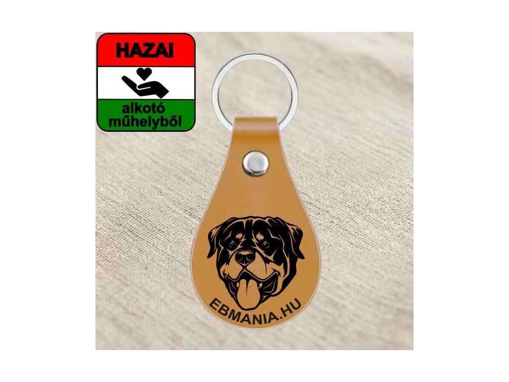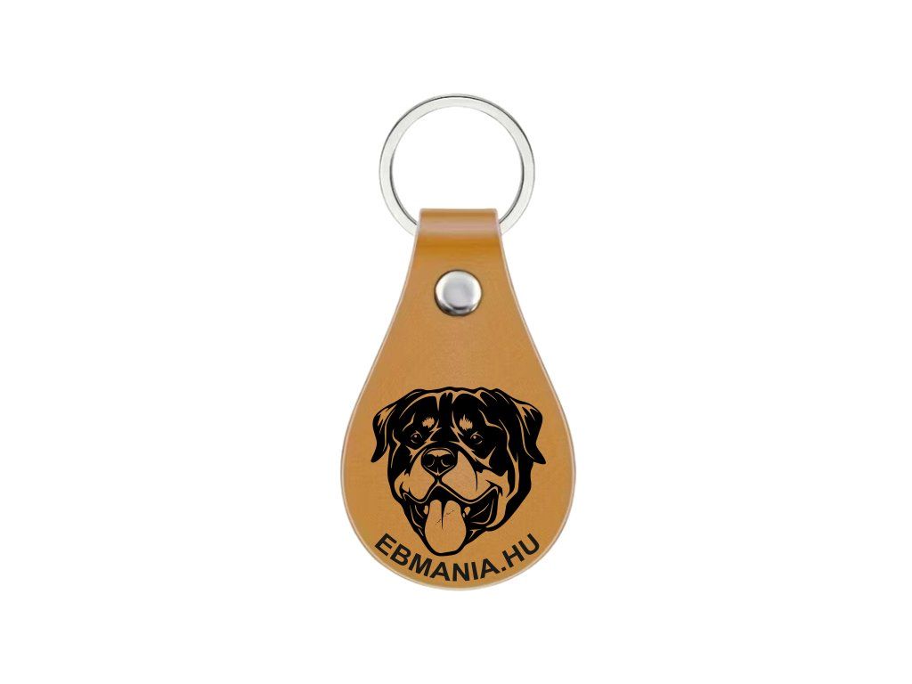 Ez a középbarna műbőr kulcstartó tökéletes választás, ha egy stílusos, mégis strapabíró emléket keresel kedvencedről. A lézergravírozott Rottweiler grafika precíz és részletgazdag, így nem kopik le a napi használat során sem.