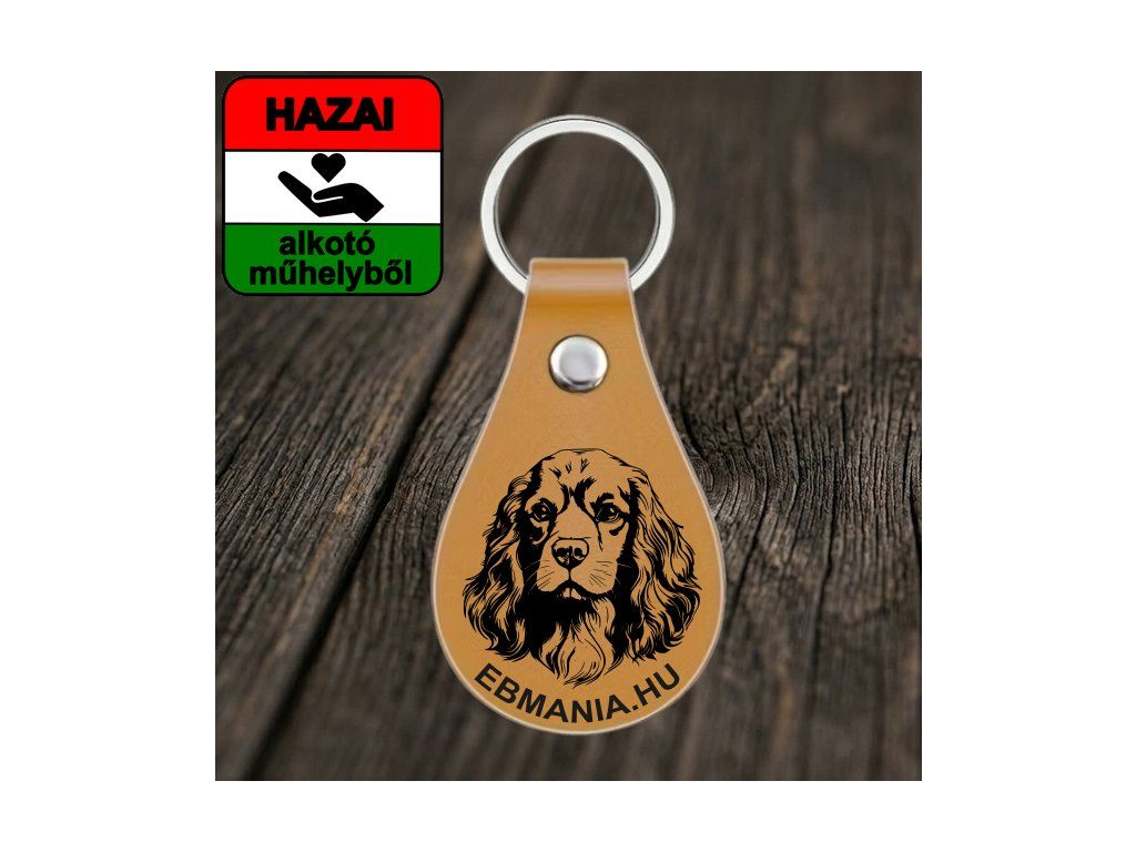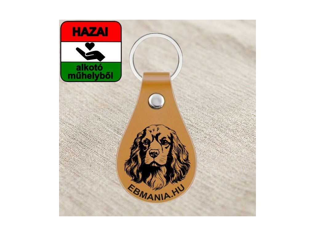 Saját névvel kérhető Spániel grafikás bőr kulcstartó